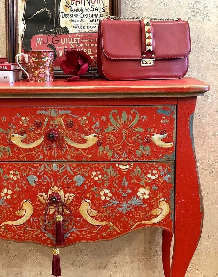 Великолепный трафарет. Чёткий рисунок, большое количество деталей делает его насыщенным, но не перегруженым. Очень удобный размер. С лёгкостью наносила на мелкие детали и на мебельный фасад.