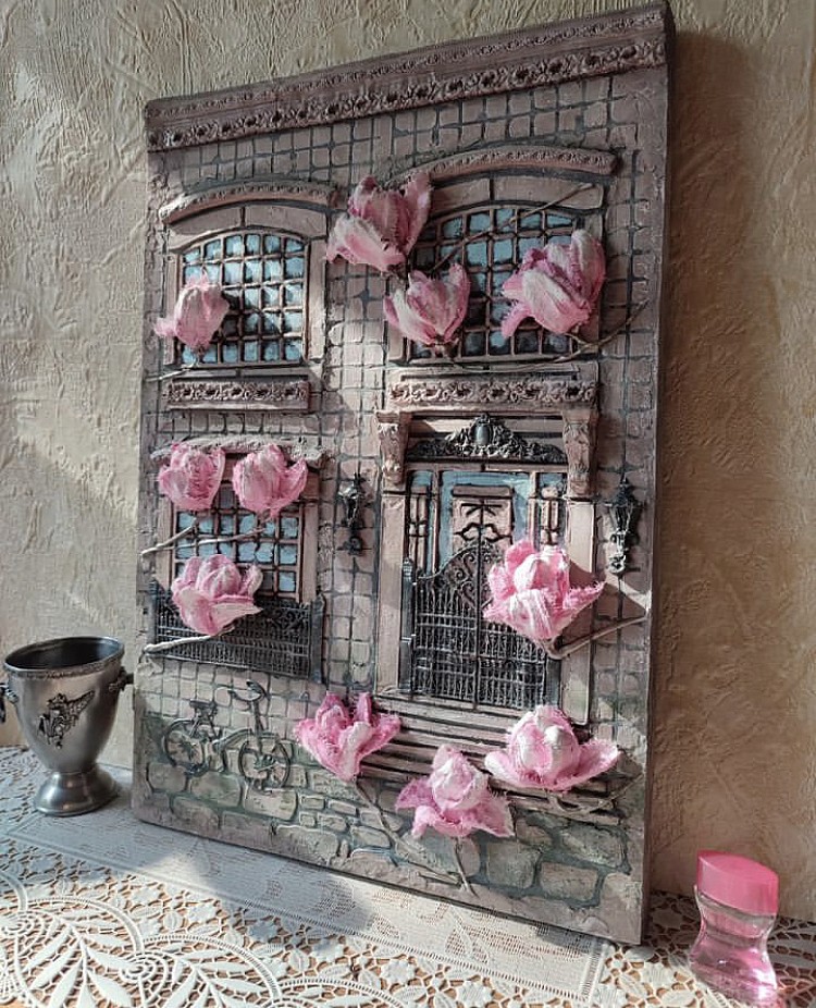 3 трафарета с окнами, дверьми, крыльцом, балконом, можно приобрести отдельно другие окна, черепицу и кирпичи.