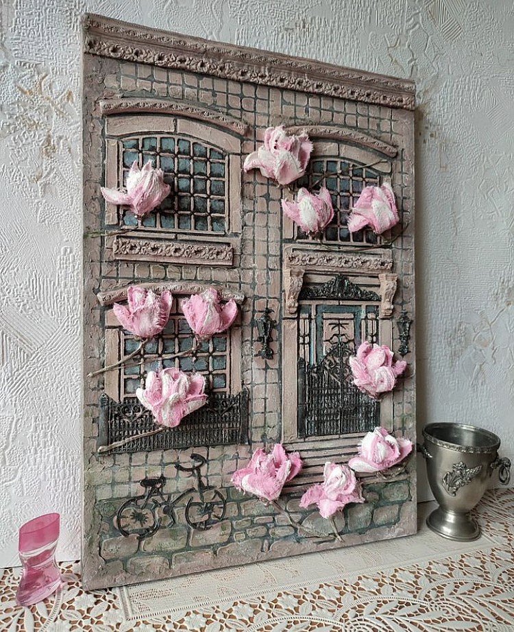В прорези этого универсального инструмента удобно наносить краску различными способами: спонжем, круглой кистью или аэрографом. Трафарет легко вдавливается в глину, а также подходит для декоративной штукатурки. Для нанесения акриловых фактурных гелей наилучшим способом является использование шпателя, который также удобно использовать для удаления излишков краски без повреждения трафарета.