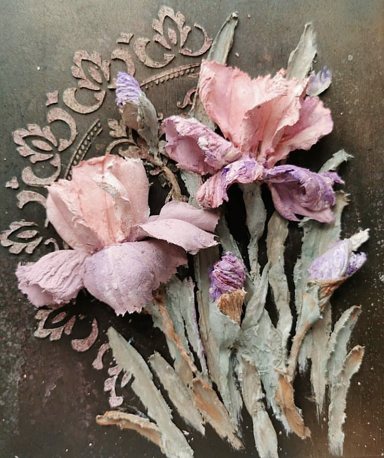 Этот трафарет моя особая Любовь! С помощью штукатурки наносила рисунок с помощью этого трафарета на стену, декорировала дверки на шкафу, тоже объёмный рисунок. Декорировала чехлы для подушек с помощью текстильной краски. Рисунок получается очень ажурным. На стене выглядит будто кружево.