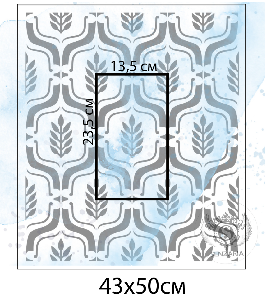 Раппорт рисунка в размере 43х50 см равен 13,5см х 23,5см